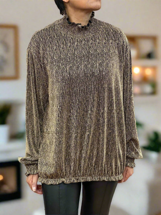 DENNI- RUFFLE NECK LUREX TOP - #BlackFridaySale