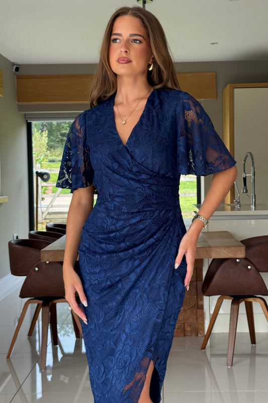 TASHA - LACE WRAP MIDI DRESS