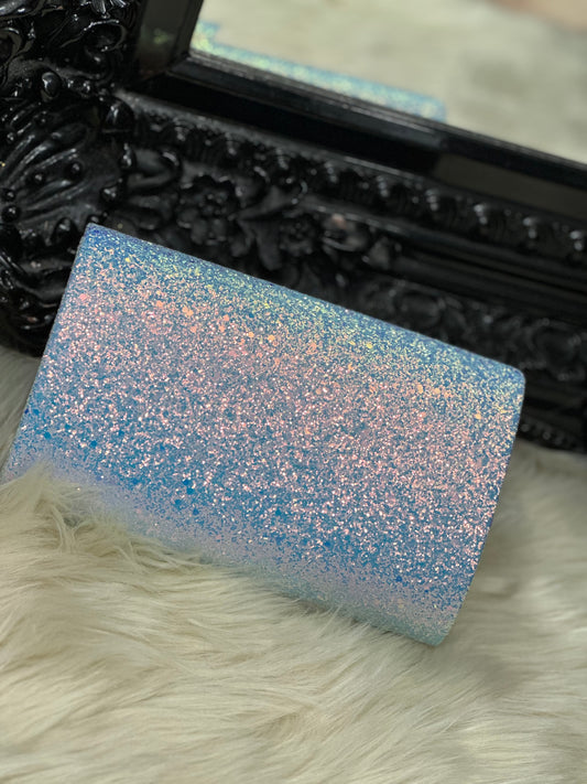 MASCARA SEQUIN FOLD CLUTCH-AQUA