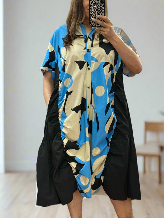 FREYA-FLYOUT PATT SHIRT DRESS --#LAST 1 LEFT