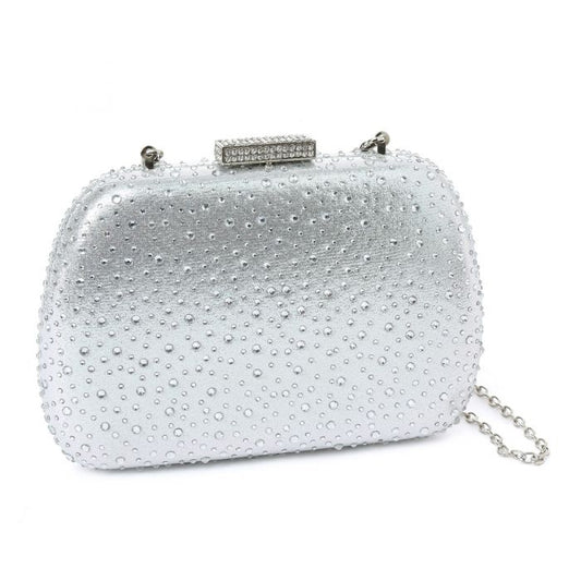 Sparkle Gemstone Clutch/Chain Bag-Silver