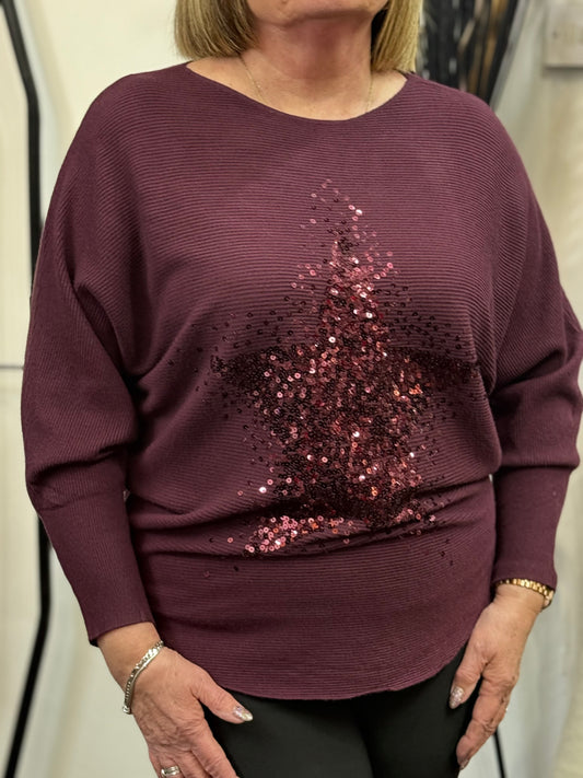 PHOEBE-SEQUIN STAR BATWING TOP-
