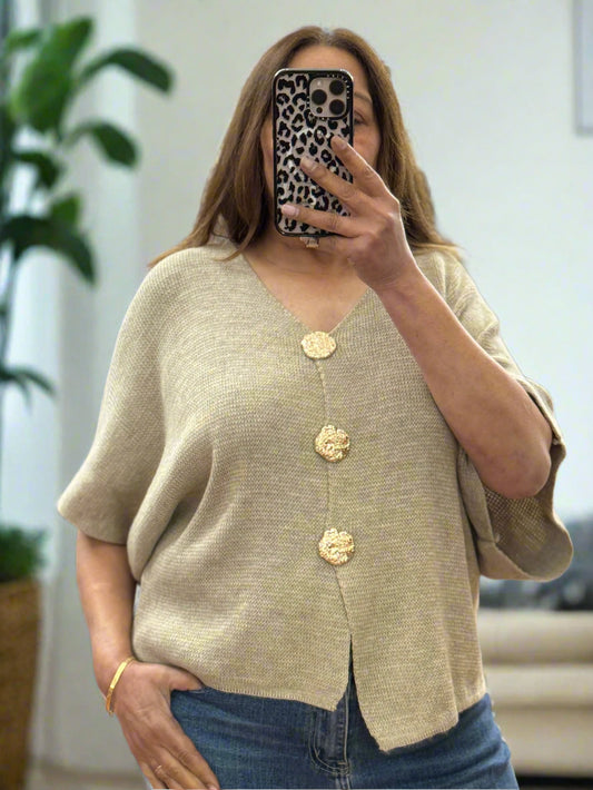 ALEX-HAND KNIT FLOWER CARDI- CAMEL