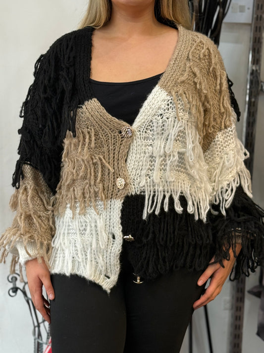 PEYTON-SHAGGY FRINGY PANELS CARDI-#BlackFridaySale -🖤🖤AUTO XTRA20% off @ checkout