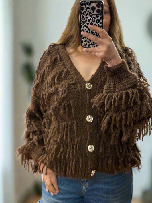 PEYTON-SHAGGY FRINGY PANELS CARDI