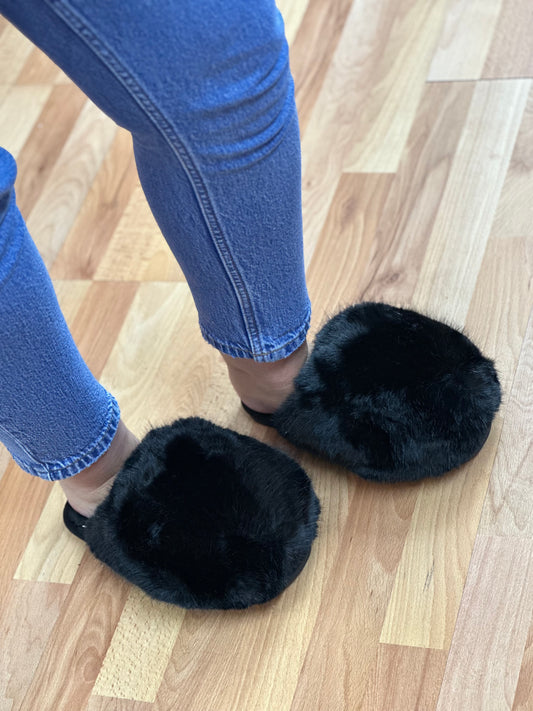 CANDICE -F/FUR MULE BED SLIPPER- ANY2FOR£15