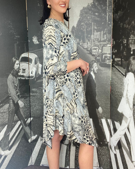 Blouse Over Print Pleat Dress- SALE now 50%OFF-LAST ONE LEFT