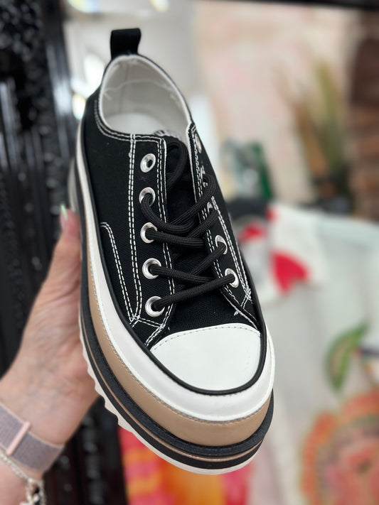 CANVAS D-INSPIRED PLATFORM TRAINER- BLACK-#STOCKROOM FLASHSALE