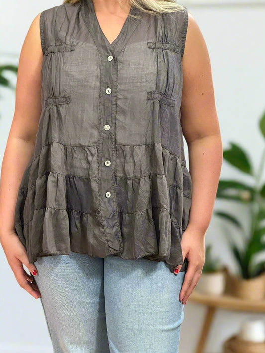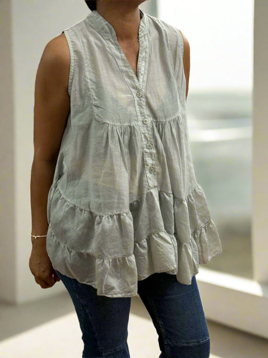 DIANA-BROOCH DETAIL FRILL SLV TOP