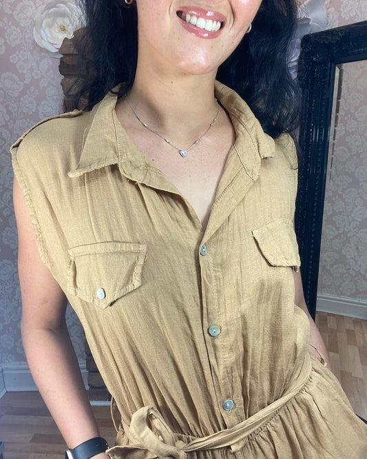 Straight Leg Linen Jumpsuit- Beige - #SALE15-LAST ONE LEFT