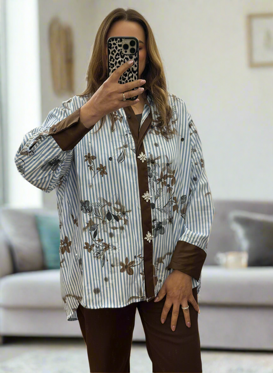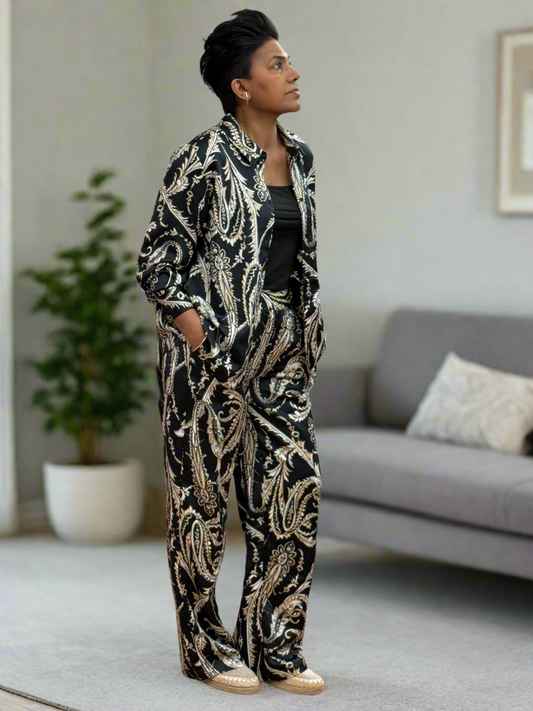 BYOUNG-FLAIR PRINT SILKY SHIRT-CO-ORD- #NOVEMBER BF30%