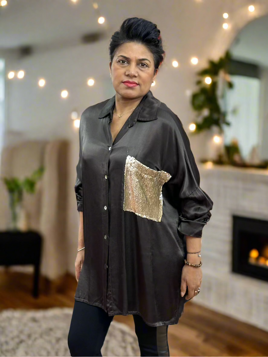 SATIN SEQUIN POCKET SHIRT-#BlackFridaySale
