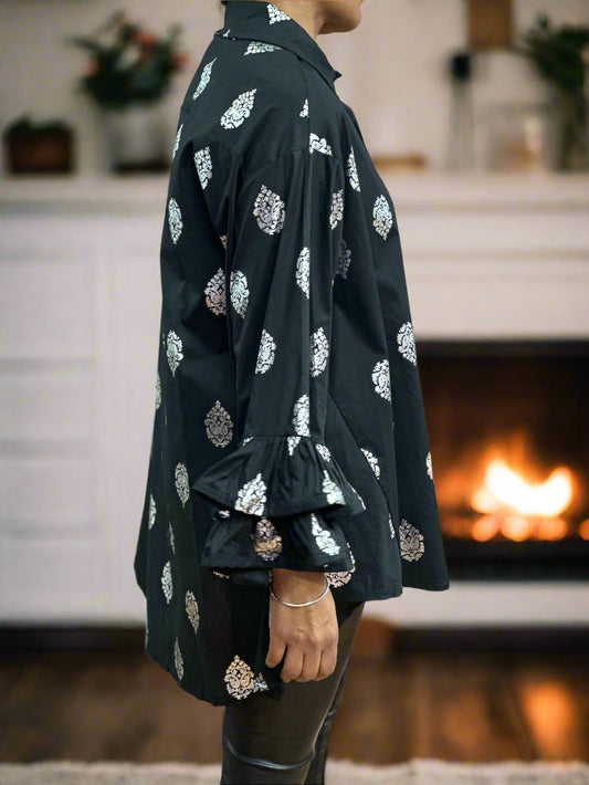 FOIL PAISLEY RUFFLE CUFF SHIRT-#BlackFridaySale - -🖤🖤 AUTO XTRA20% off @ Checkout