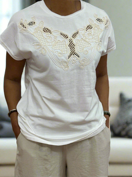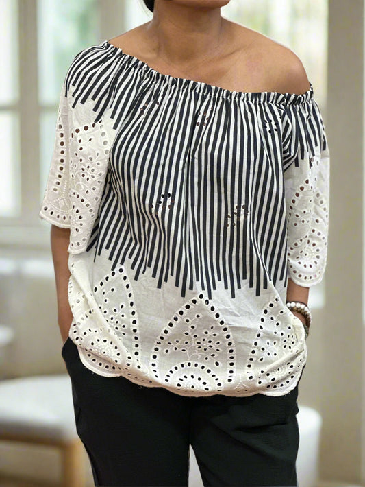FIONA -BARDOT STRIPE EMB TOP #LAST 1 LEFT