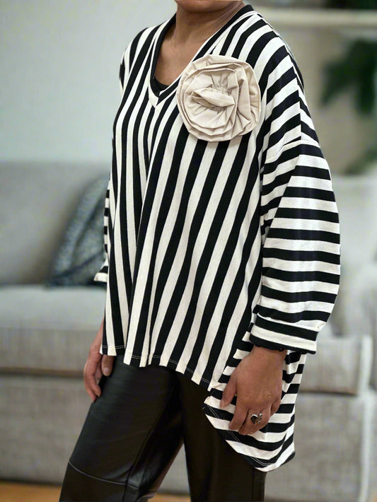 STRIPEY JERSEY CORSAGE TOP #LAST 1 LEFT