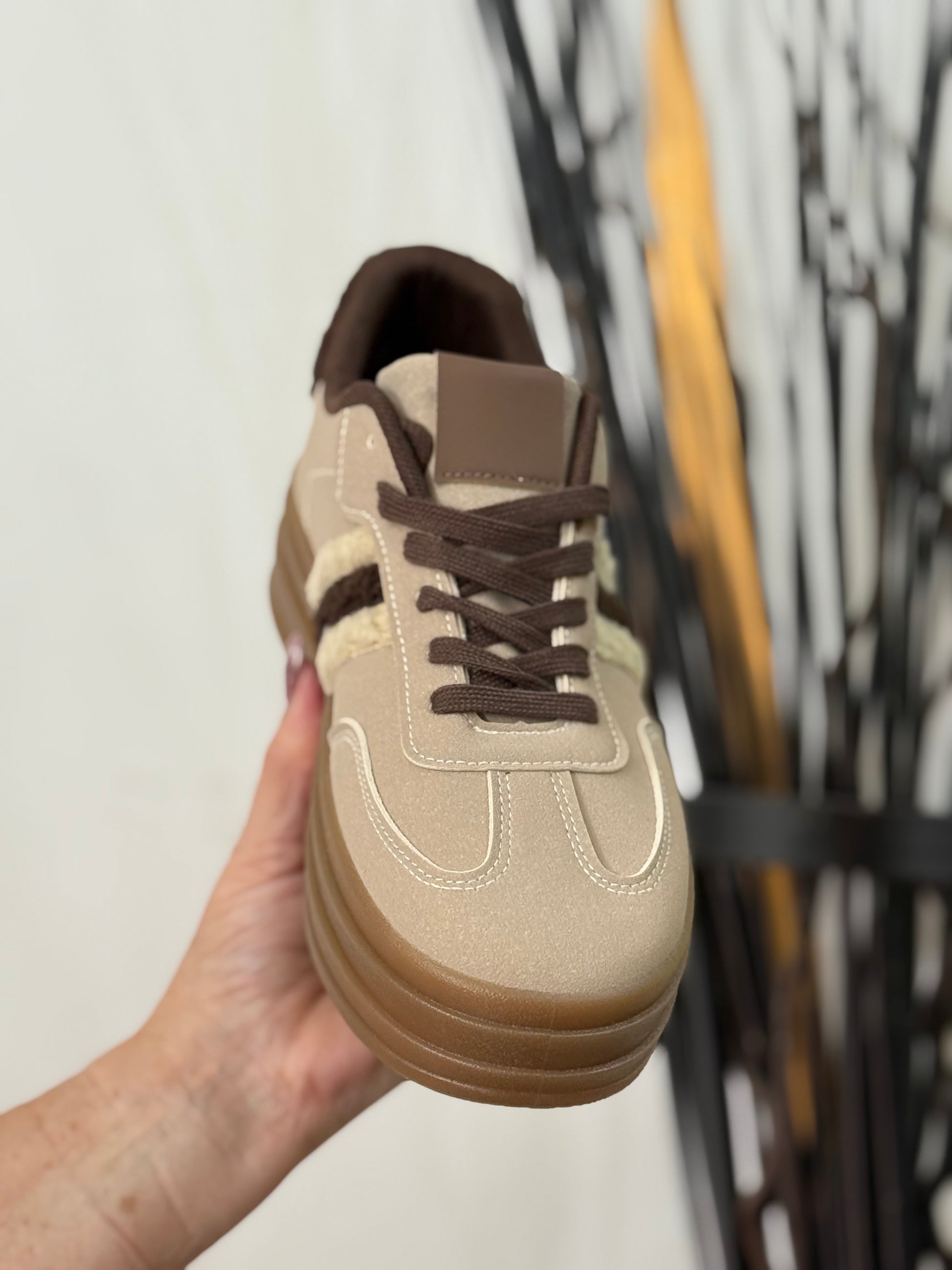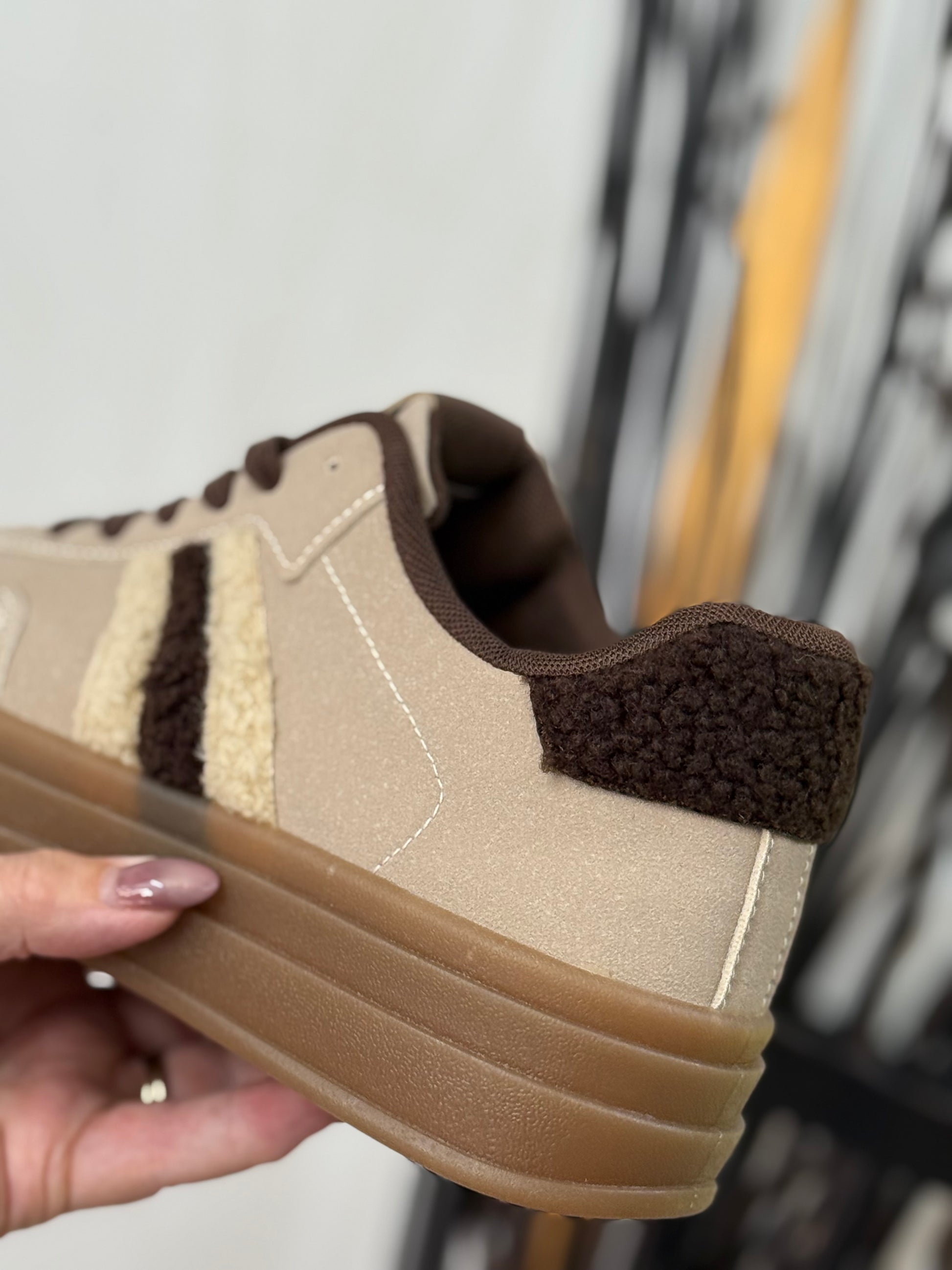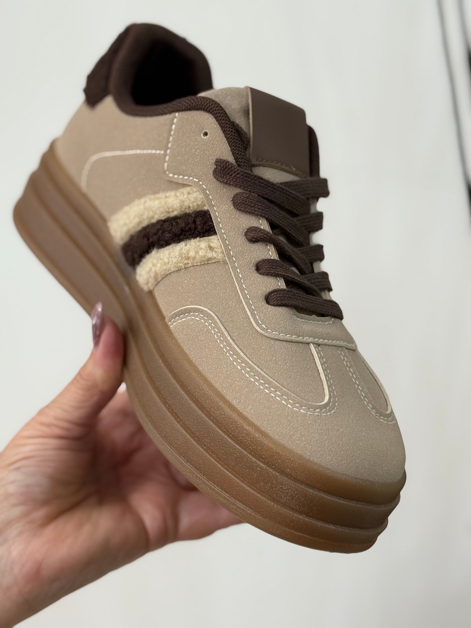 PLATFORM SUEDETTE TRAINER WITH FUR STRIPE DETAIL. ALL IN THIS SEASON COLOURS