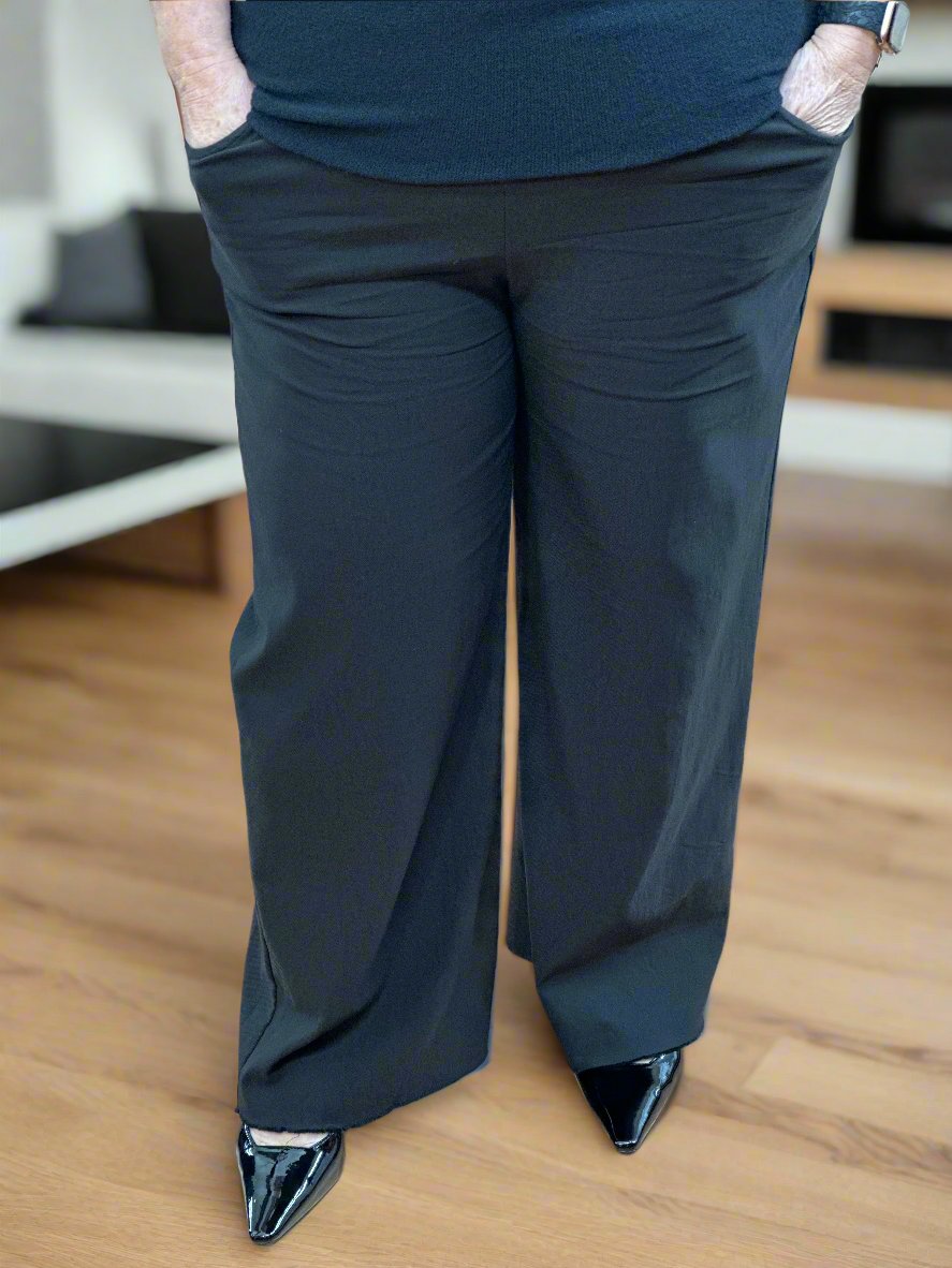Wide leg magic trousers with 360 stretch and draw string waistband, a new twist on the magic fabric