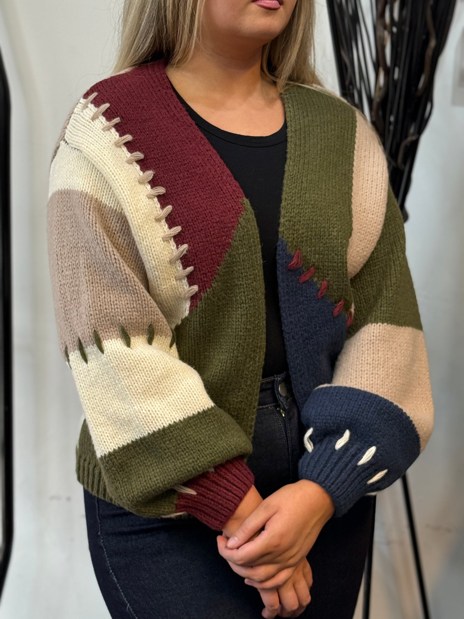 REBA-COLOURS PANEL KNIT CARDIGAN