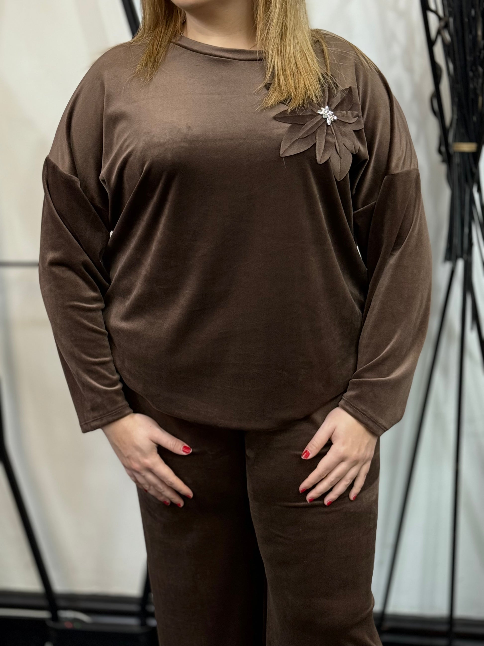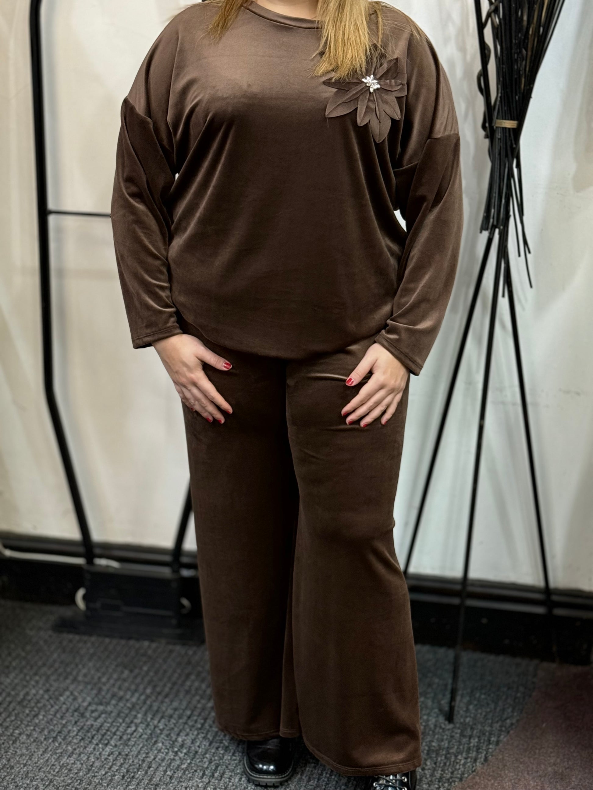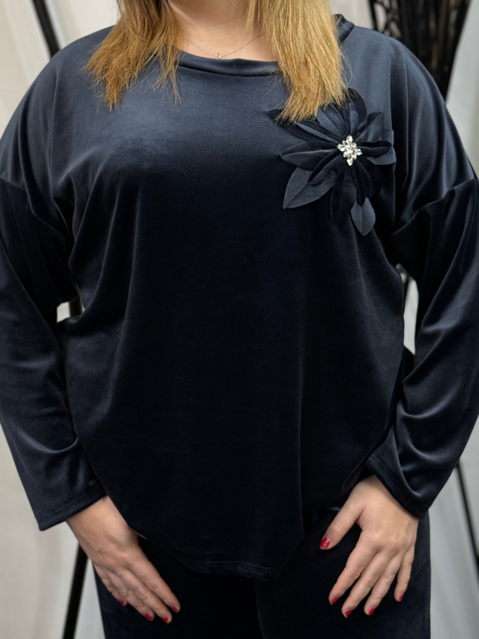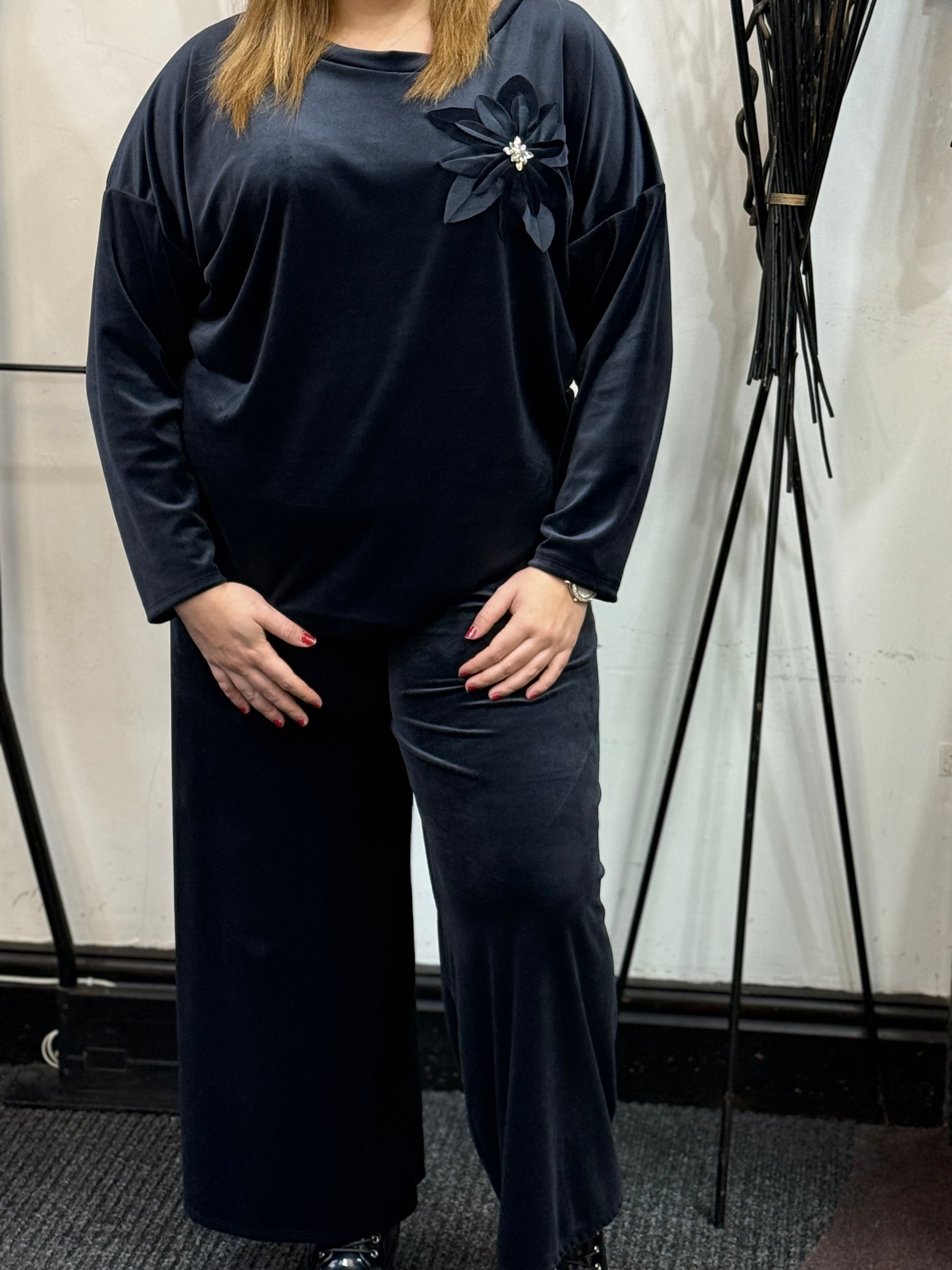 SKYLA-FLOWER APPLIQUE VELOUR SET